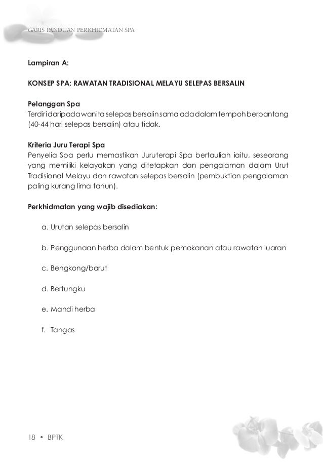 Garis Panduan Perkhidmatan Spa via www.slideshare.net